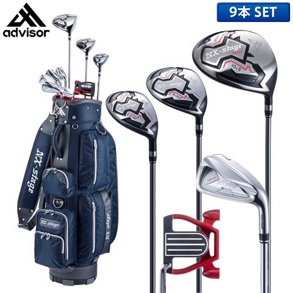 20アドバイザー ゴルフ NX-STAGE クラブセット 9本組 (1W,FW17.5,UT20,I7-PW,SW,PT) キャディバッグ付き advisor NXステージ 初心者【あす楽対応】