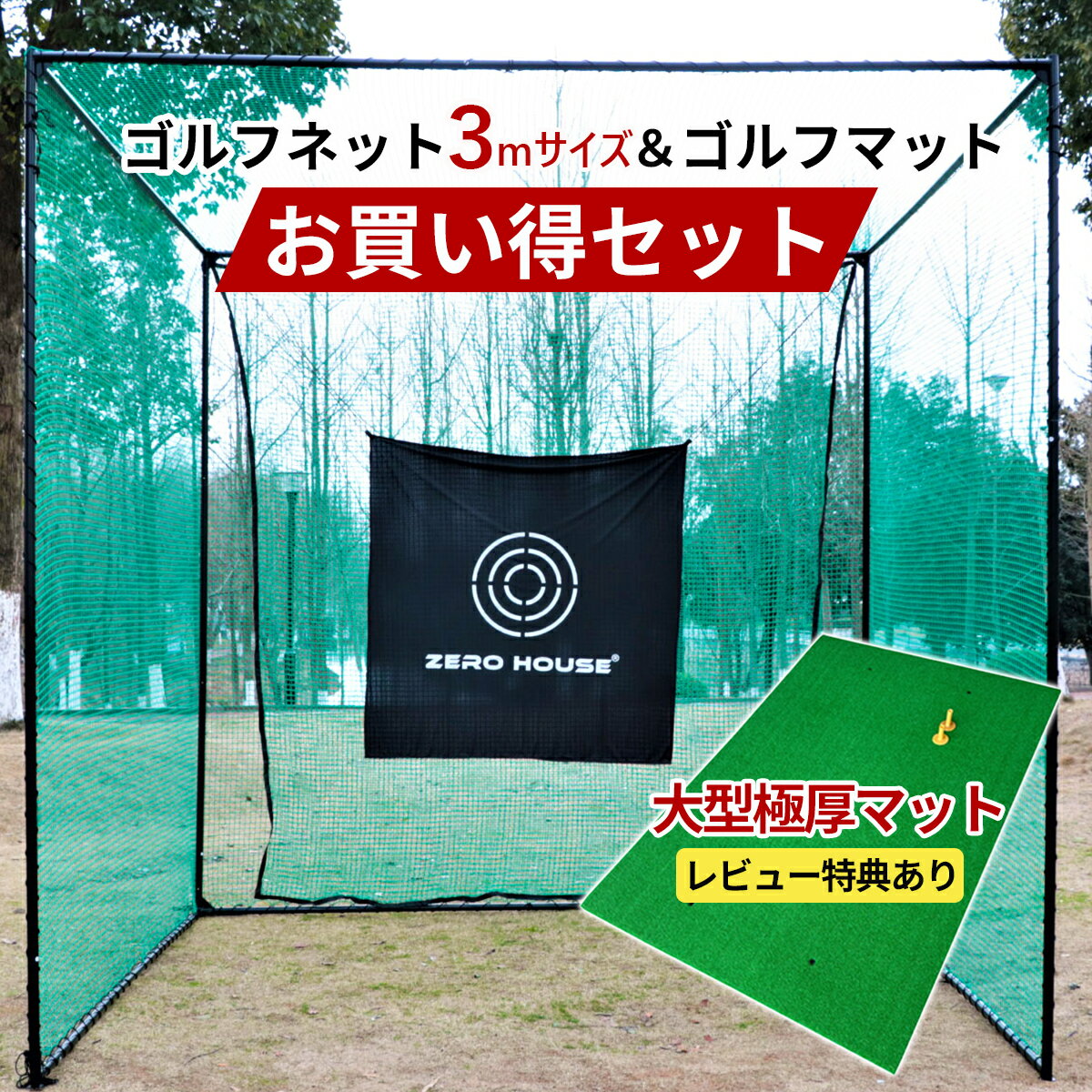 19ゴルフ 練習 ネット 3M×3M×3M ゴルフマット 150CM×100CM セット 大型 ゴルフネット 大型 ゴルフマット ゴルフ 練習器具 ネット 練習 マット