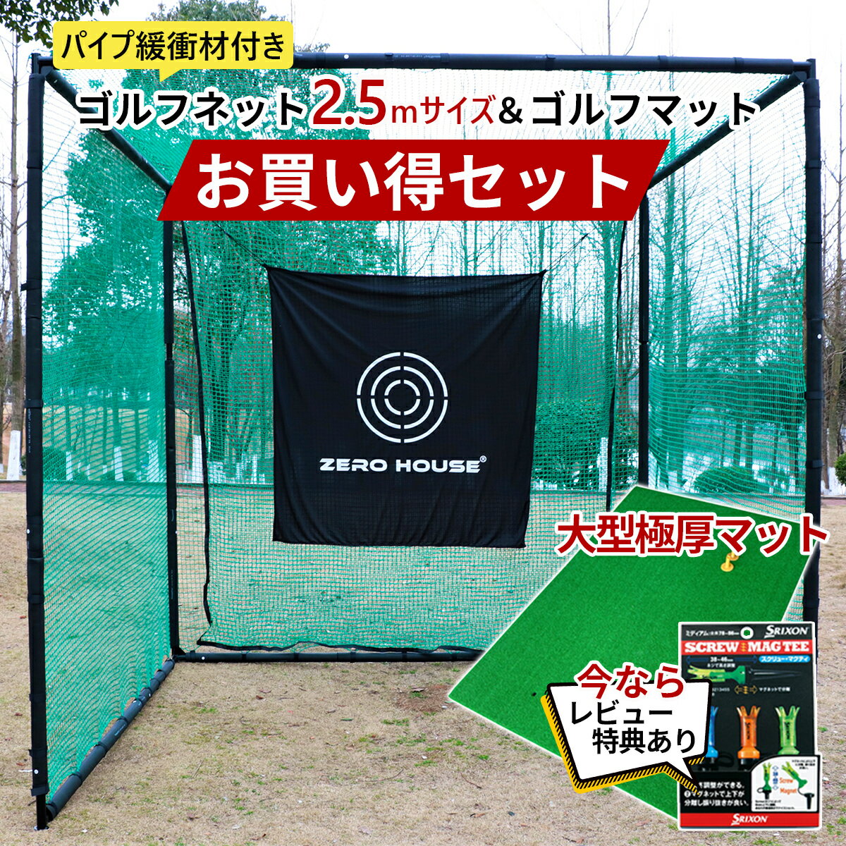 27【レビュー特典あり】ゴルフ 練習 ネット 3M×3M×3M 緩衝材付き ゴルフマット 150CM×100CM セット 大型 ゴルフネット 大型 ゴルフマット ゴルフ 練習器具 ネット 練習 マット 防球ネット