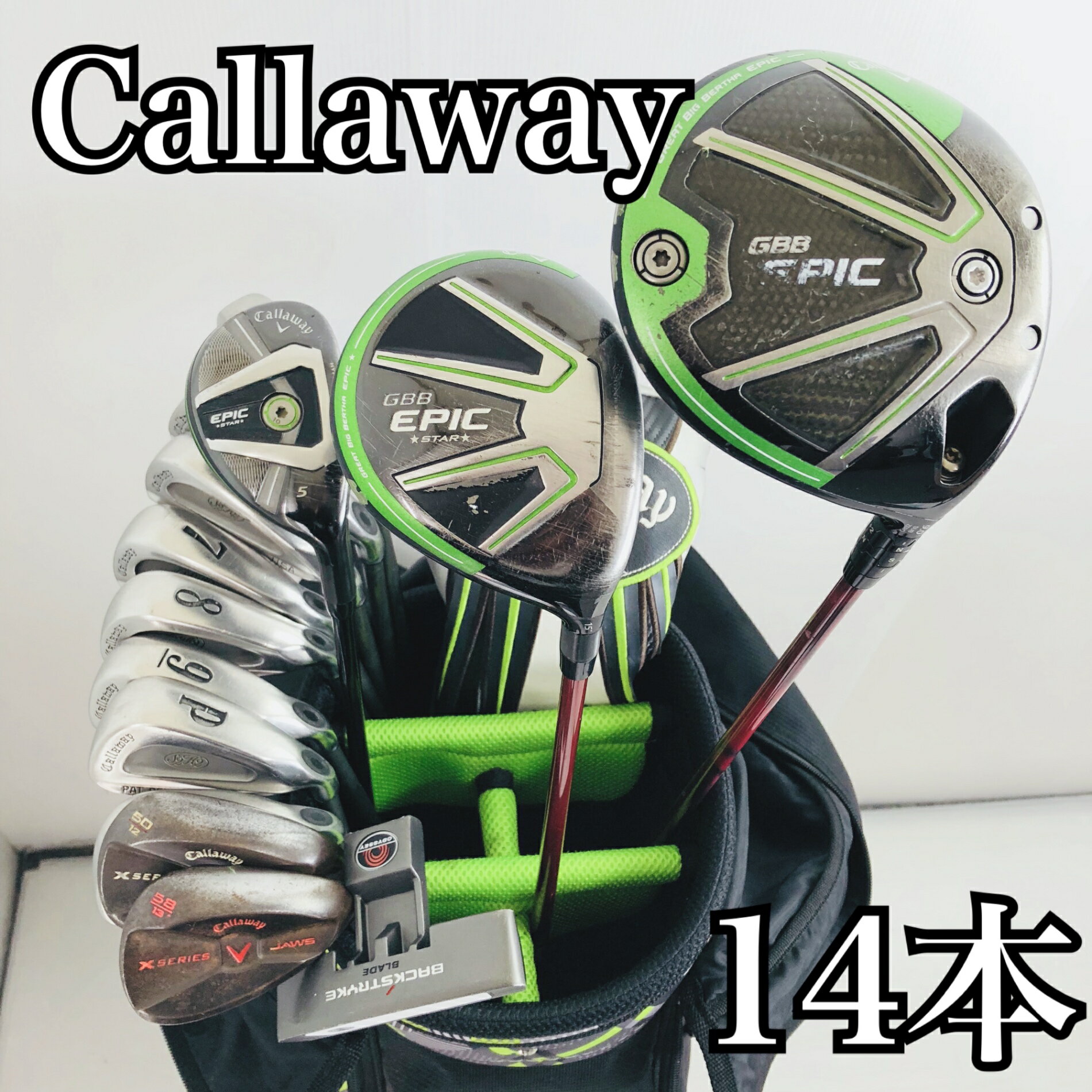 4【中古】キャディバッグ付 豪華 14本 Callaway キャロウェイ GBB EPIC エピック メンズ ゴルフセット ゴルフクラブセット セット 初心者 入門 フルセット 右利き パター付 安価 81Y-07
